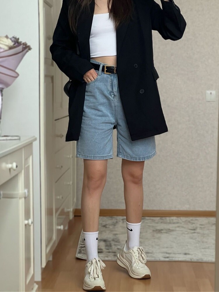 BERMUDA JEANS ATÉ O JOELHO. Essa peça tem cintura alta, silhueta reta, comprimento até o joelho, no tecido jeans, bolsos frontais e traseiros, disponível em 2 opções de cores.