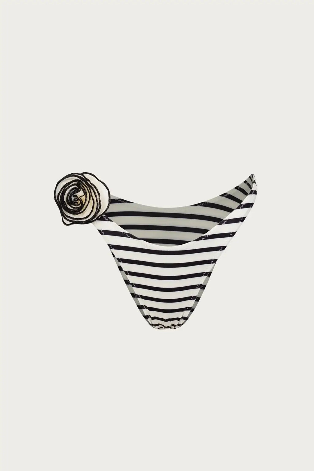BIQUÍNI TOMARA QUE CAIA FLORES 3D LISTRADO. Biquíni composto por top e calcinha. Confeccionado no tecido Poliéster e Elastano. O top é um modelo tomara que caia com detalhe frontal de flor 3D, possui fecho traseiro e busto drapeado. A calcinha é um modelo asa delta com 2 opções, uma mais fina e outra mais larga. Possui detalhe de flor 3D. O biquíni é forrado e as flores são removíveis. Disponível nos tamanhos P, M e G.