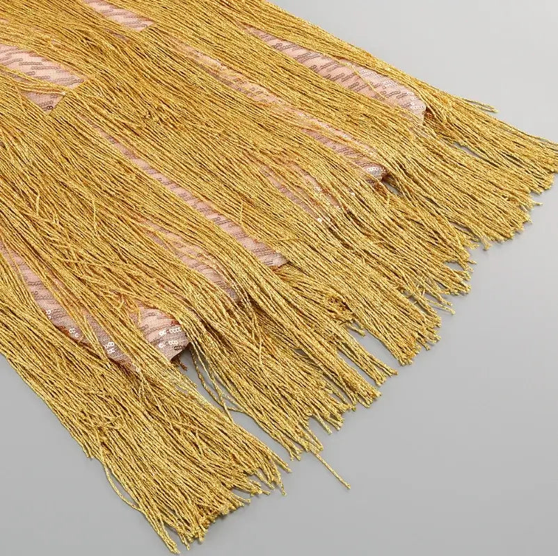 Vestido Curto Paetê Com Franja Champagne