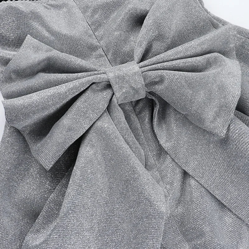 VESTIDO CURTO TOMARA QUE CAIA COM BRILHO CINZA. Confeccionado em Algodão, Poliéster e Elastano. Possui comprimento curto estilo godê com detalhes drapeados, decotes tomara que caia, caimento leve, cintura marcada, detalhe de laço na parte de trás e fechamento por zíper invisível. O vestido é todo confeccionado em tecido Lurex Brilhoso. Disponível nos tamanhos P, M e G.