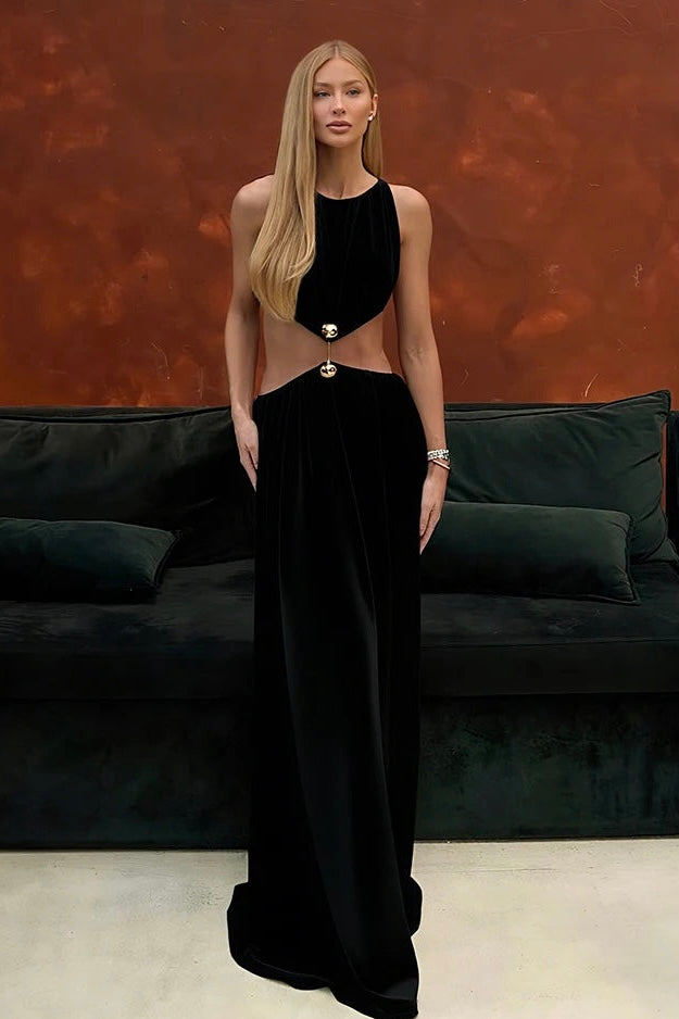 VESTIDO LONGO EFEITO MOLHADO ASSIMÉTRICO PRETO